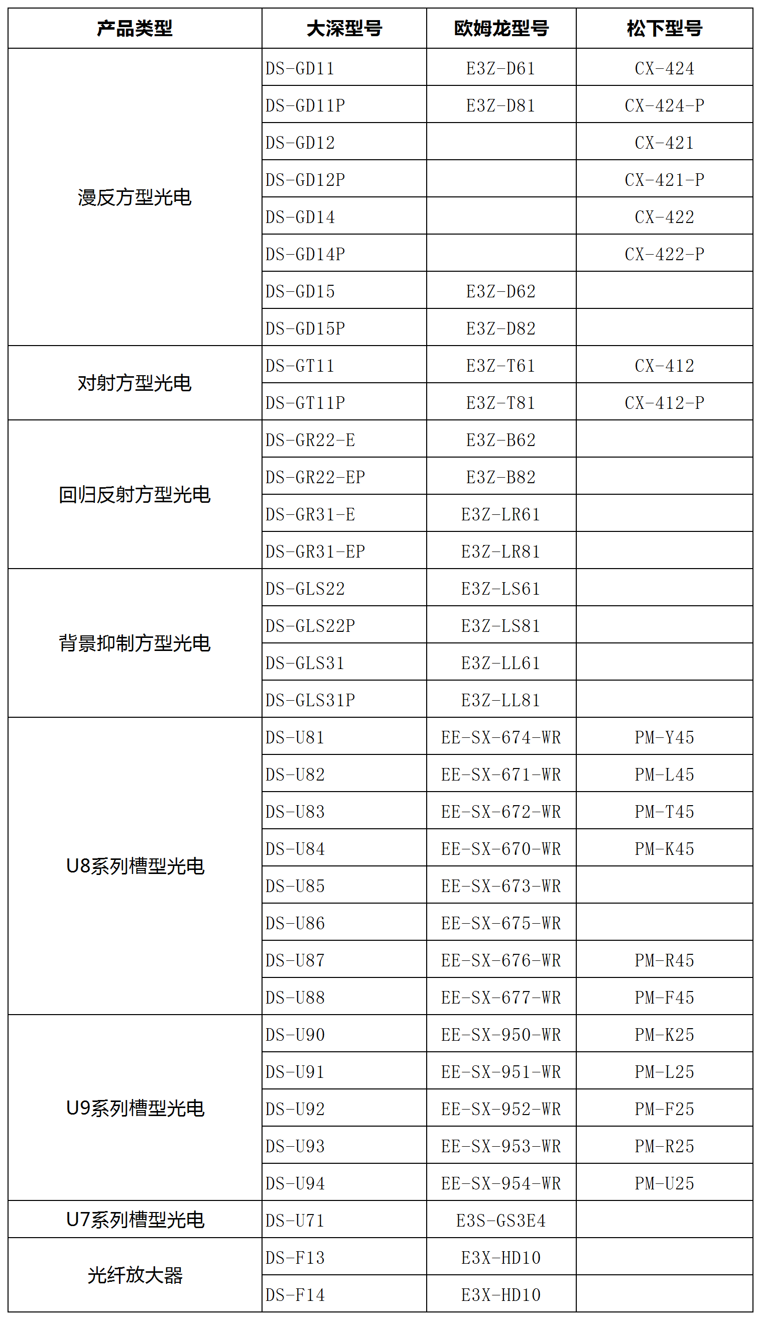 此外,大深还有其他系列的光电传感器,如DS-GR系列方型光电传感器,也可以替换欧姆龙等进口品牌的同类产品。