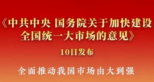 重磅!顶层制度文件出炉!4月10日国家正式发布《中共中央国务院关于加快建设全国统一大市场的意见》。